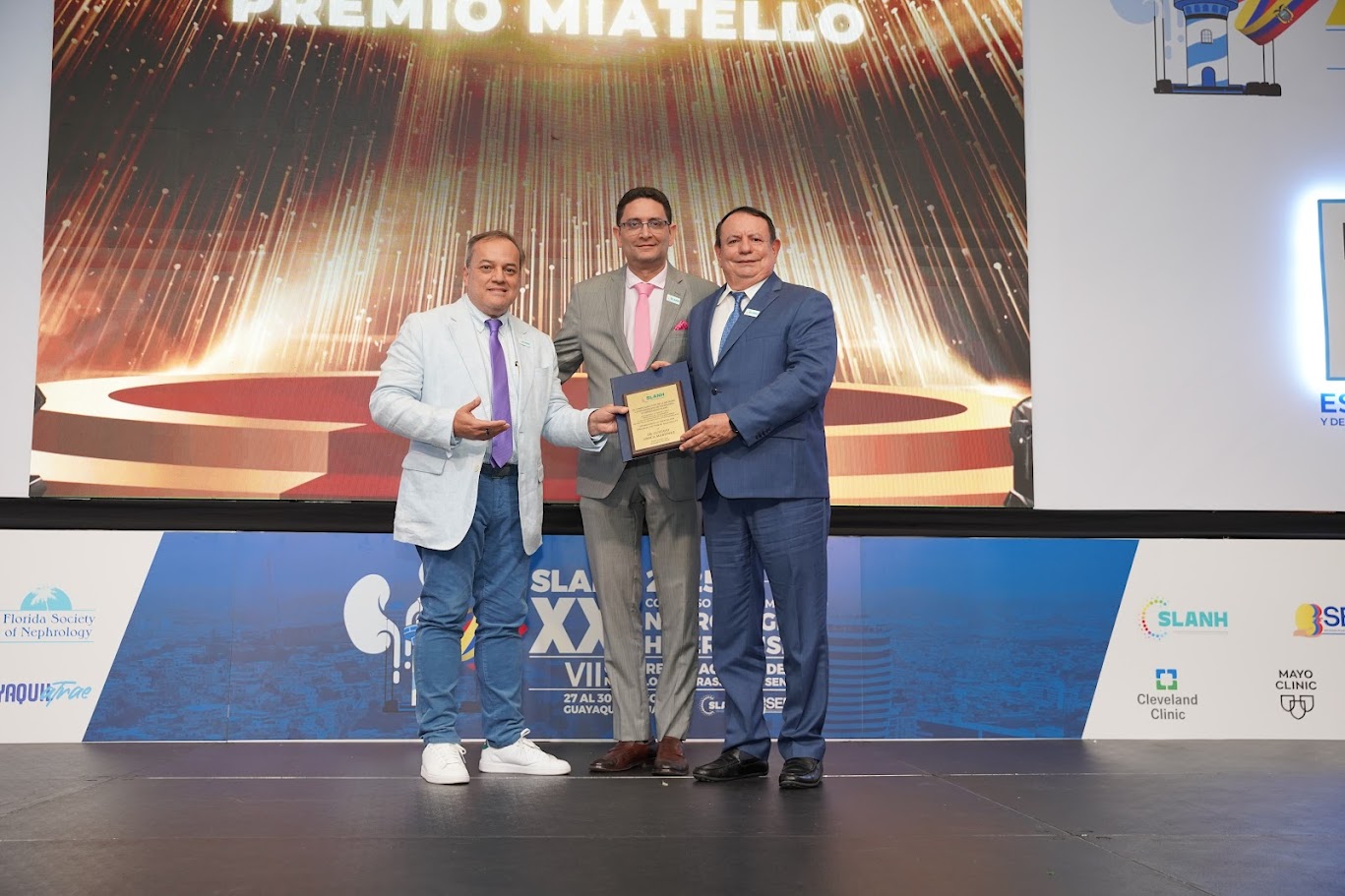 El director de la Especialización en Nefrología de Unisimón fue exaltado con el Premio Víctor Miatello en el XXI Congreso de la SLANH, realizado este año en la ciudad de Guayaquil (Ecuador).